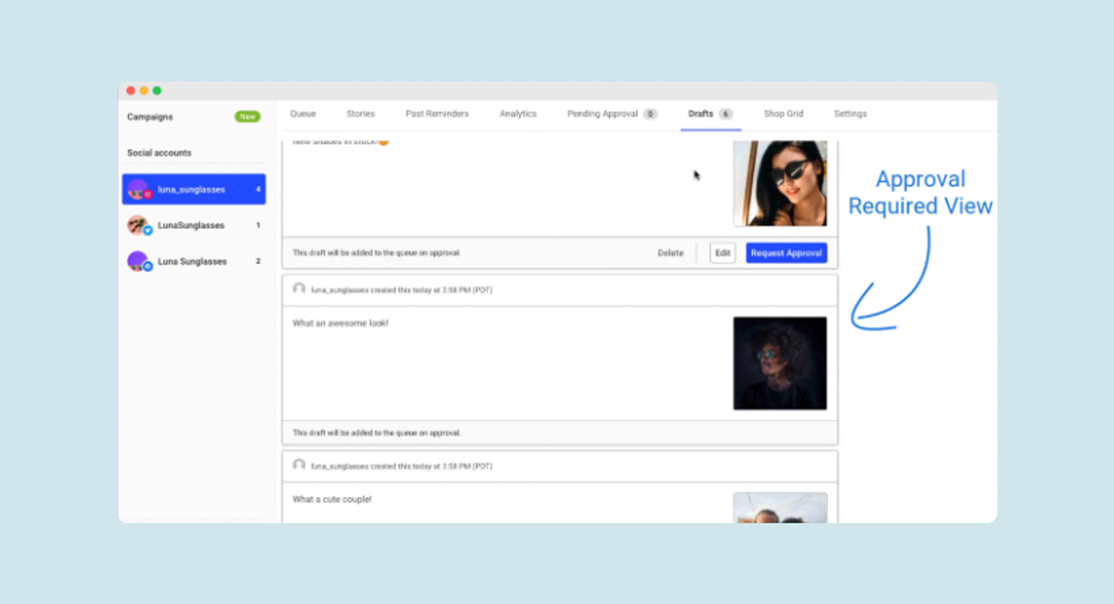 No-code social media marketing tool Buffer lets you schedule posts for up to three social media platforms (for example, Instagram, Facebook, and Twitter) for free. Draft your content and collaborate with teammates within Buffer to review and approve posts for publication.