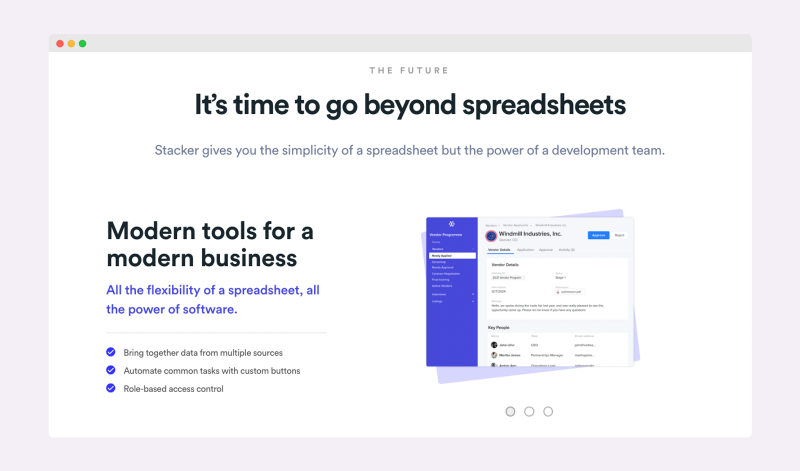 - Inventory management. Handling elements like stock levels and the various components of your supply chain are crucial for many businesses, particularly if you have a unique supply chain. No-code tools like Stacker or Internal allow you to easily create an inventory management system specific to your business.